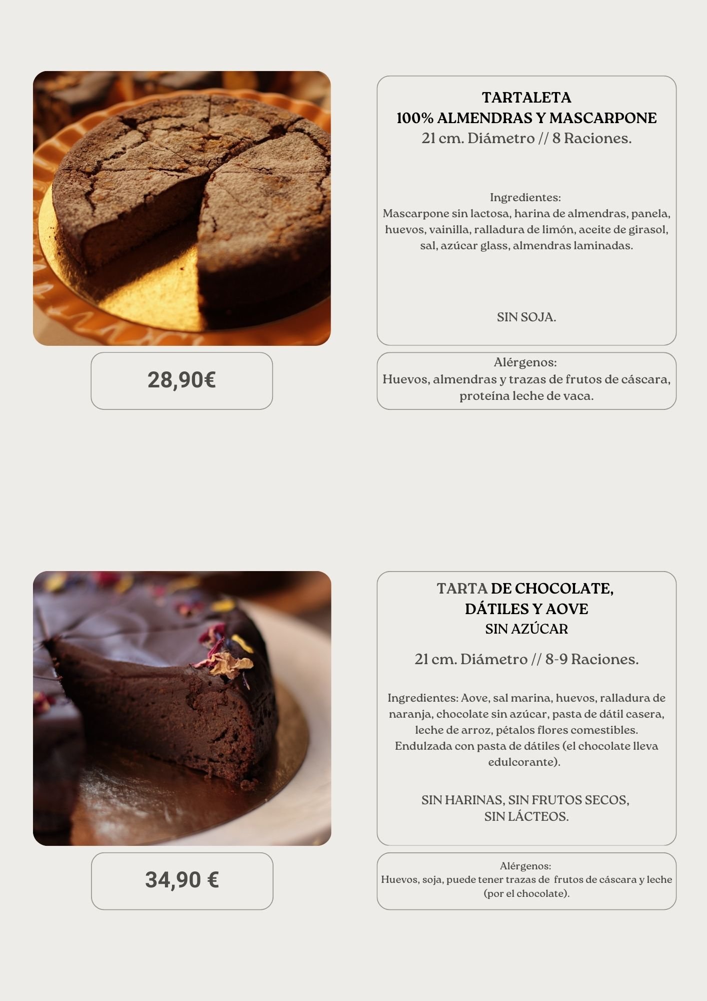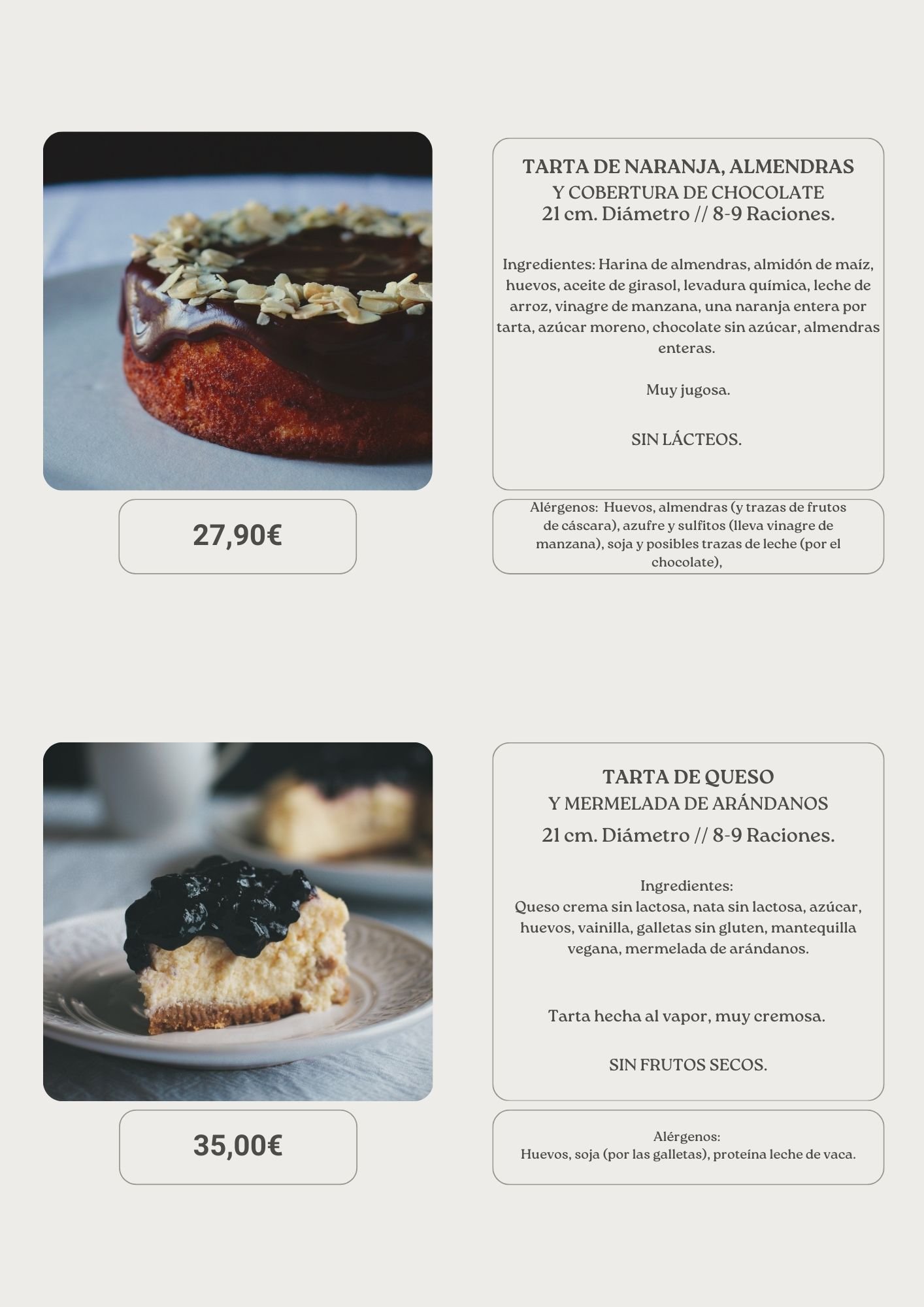 Todas nuestras tartas son artesanas, 100% sin gluten, sin lactosa y sin aditivos.